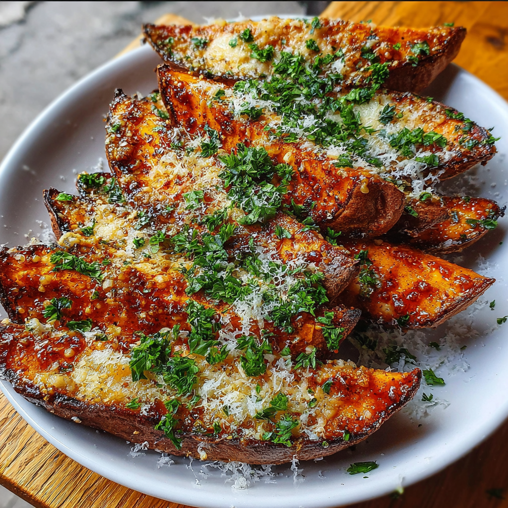 Garlic Parmesan Sweet Potato Wedges — Crispy, Flavorful & Easy Snack