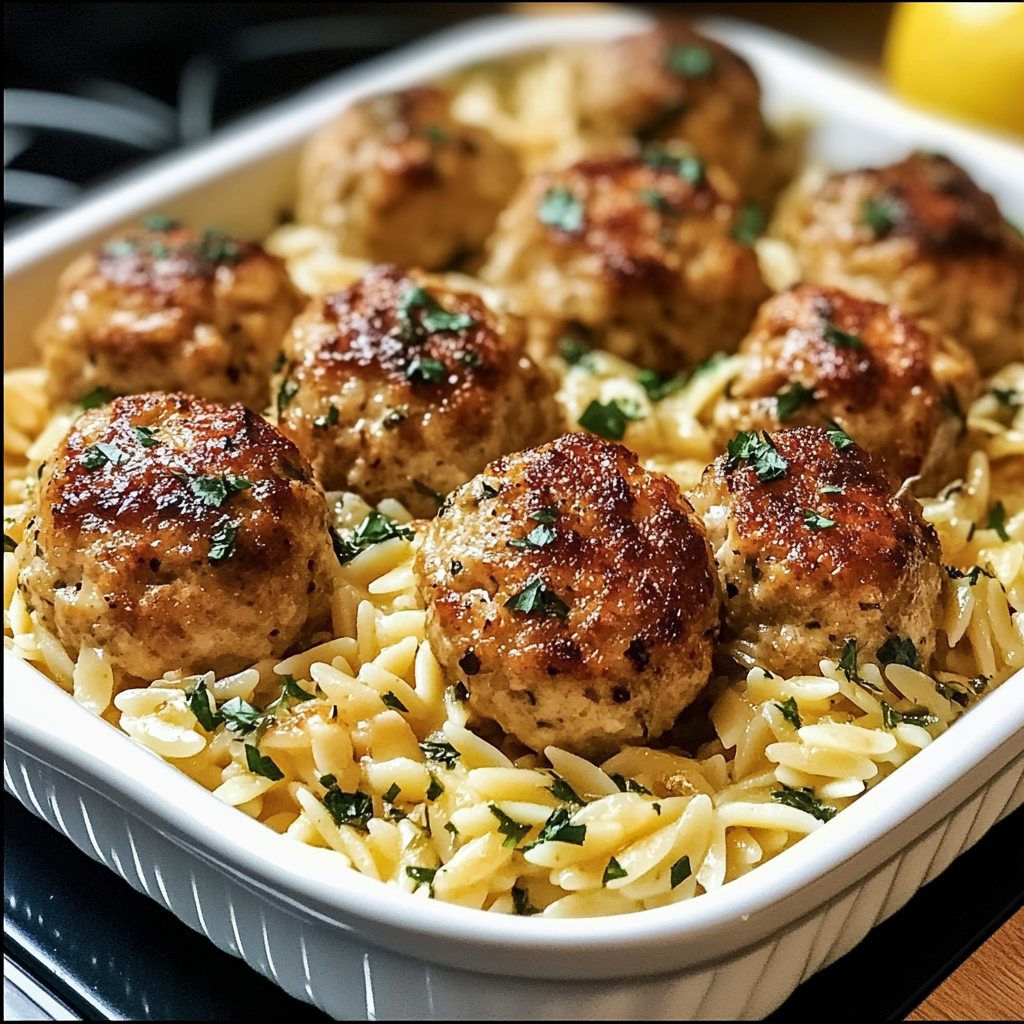 Greek Chicken Meatballs with Lemon Orzo – High-Protein Mediterranean Dinner