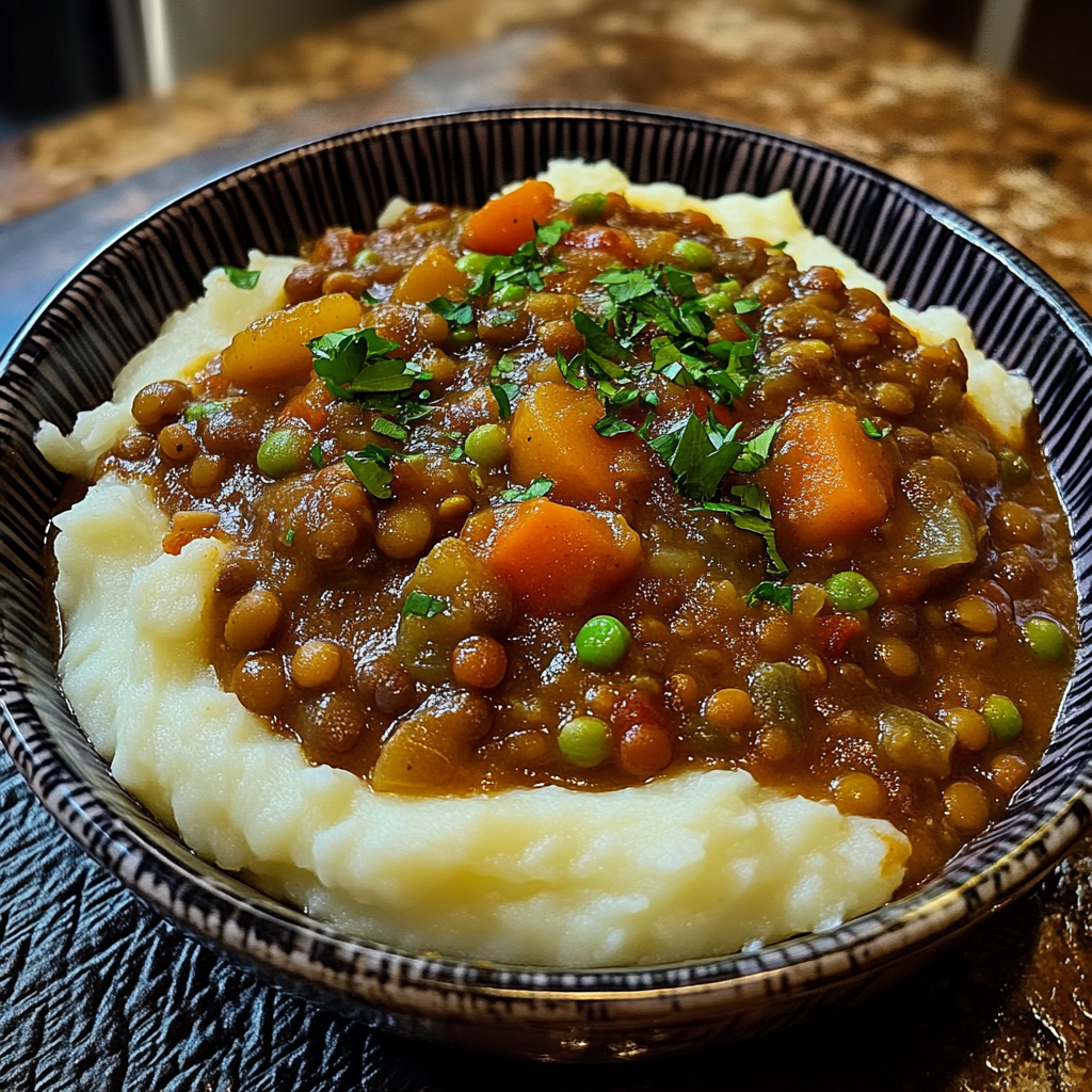 Lentil Stew Over Mashed Potatoes – Hearty, Cozy & 100% Plant-Based Comfort Food