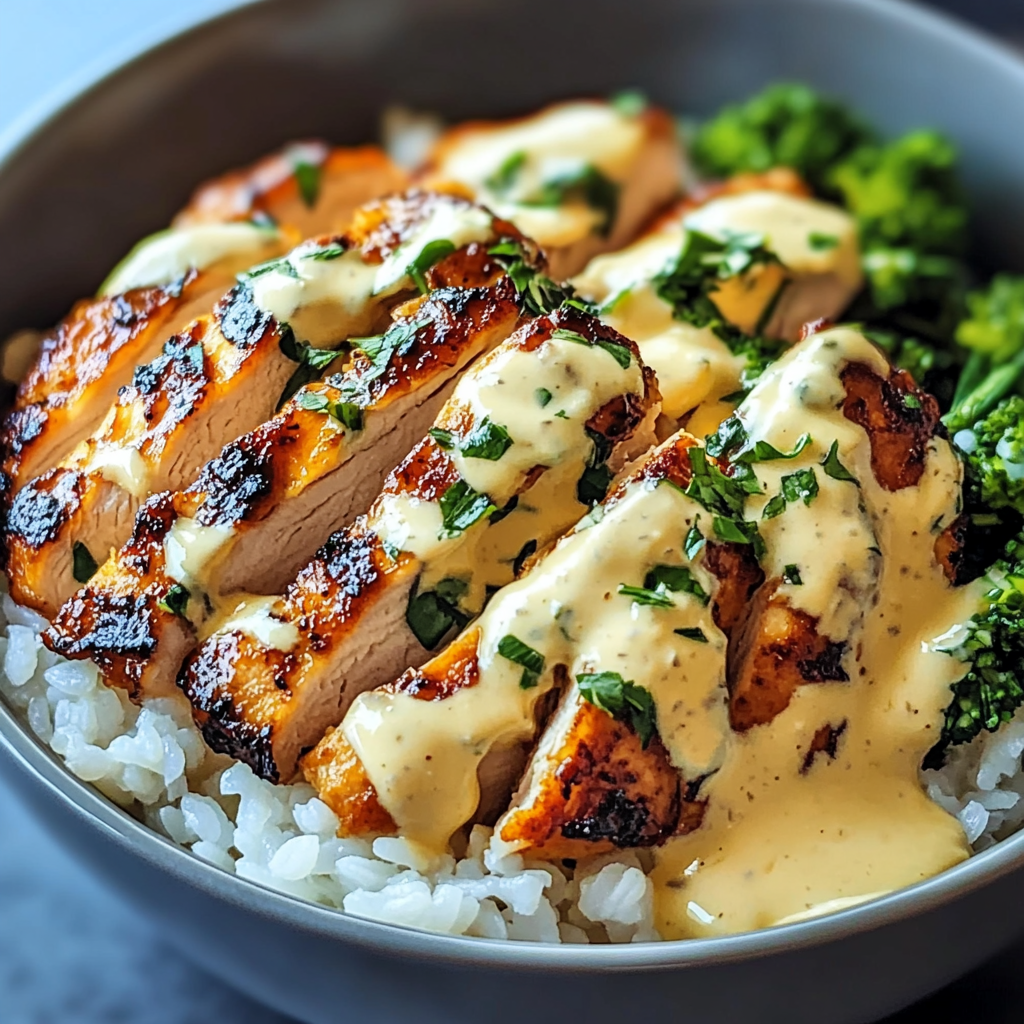 Chicken & Rice Bowls with Creamy Garlic Sauce – Easy, Flavor-Packed Dinner