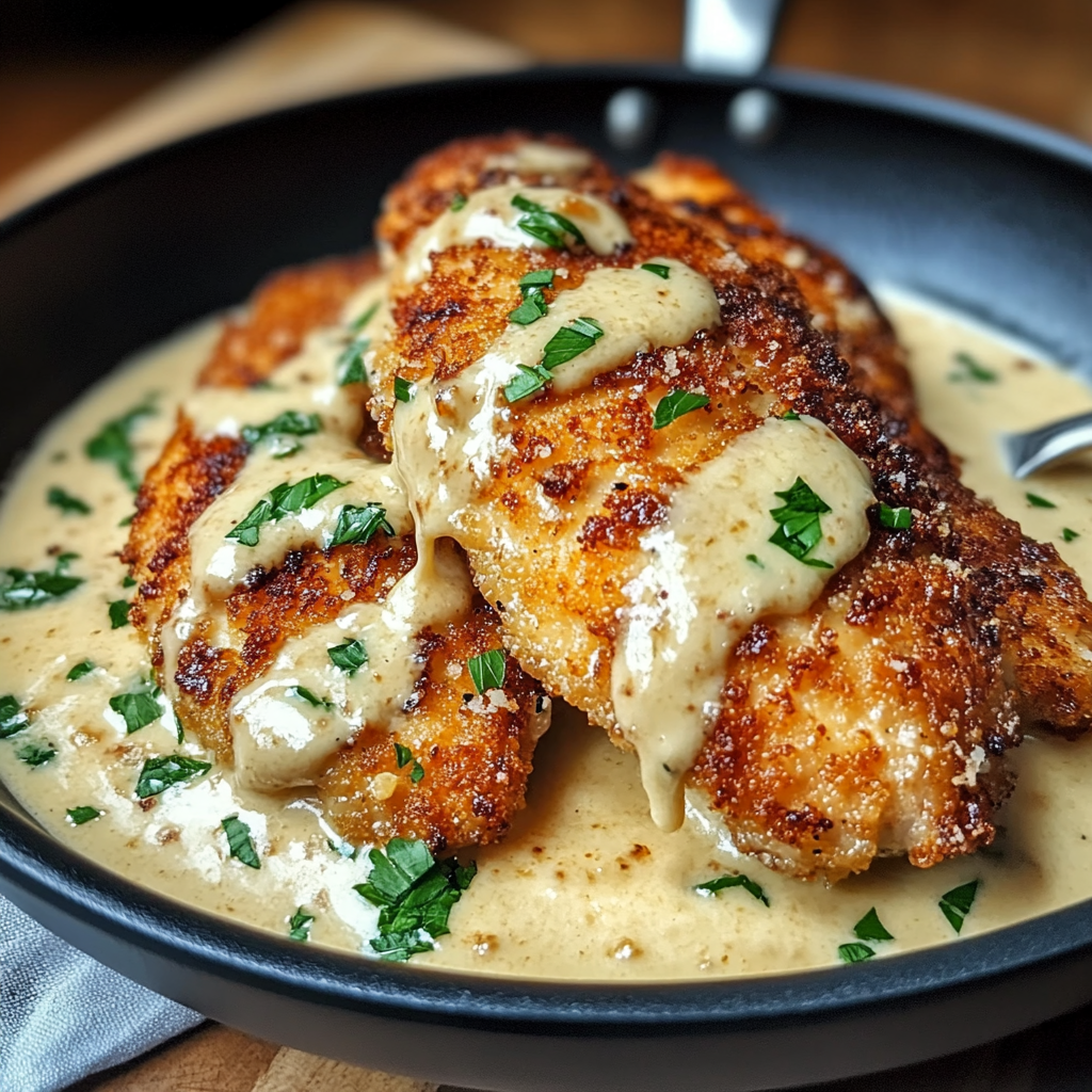 Crispy Parmesan Chicken with Dreamy Garlic Cream Sauce – Irresistible & Flavor-Packed Dinner
