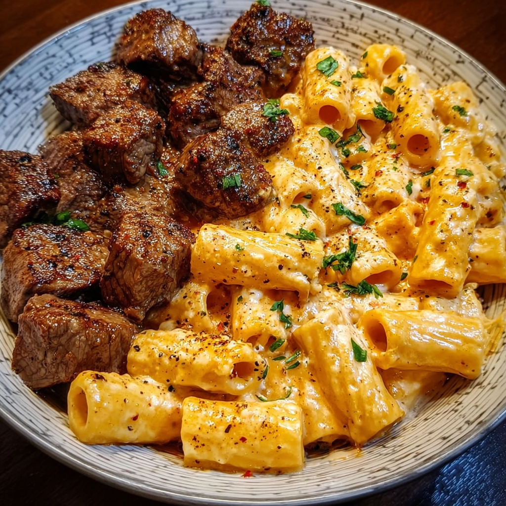 Cajun Steak Tips in Cheesy Rigatoni Parmesan Sauce – Spicy, Creamy & Comforting