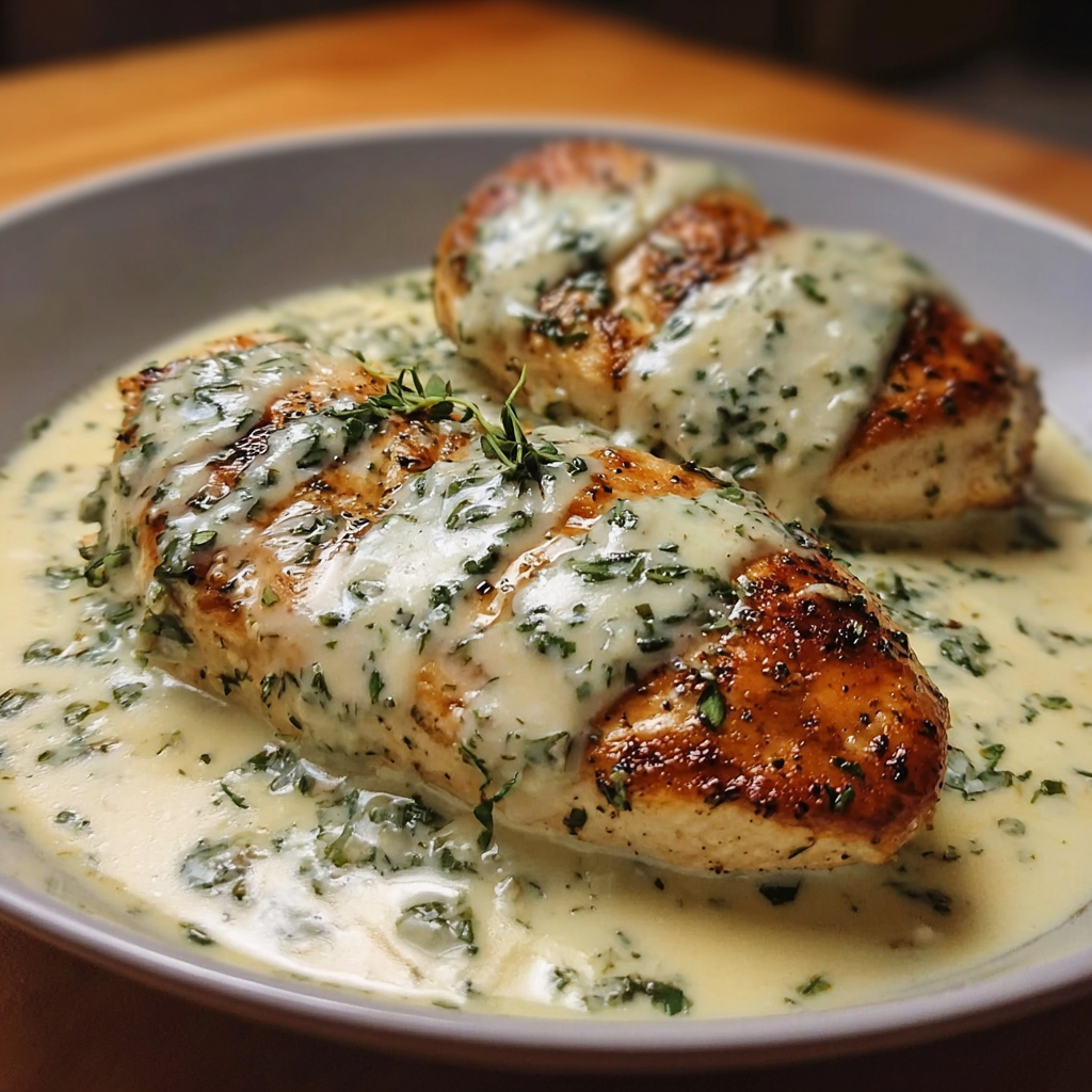Mozzarella Chicken in Basil Cream Sauce – Rich & Flavorful Dinner