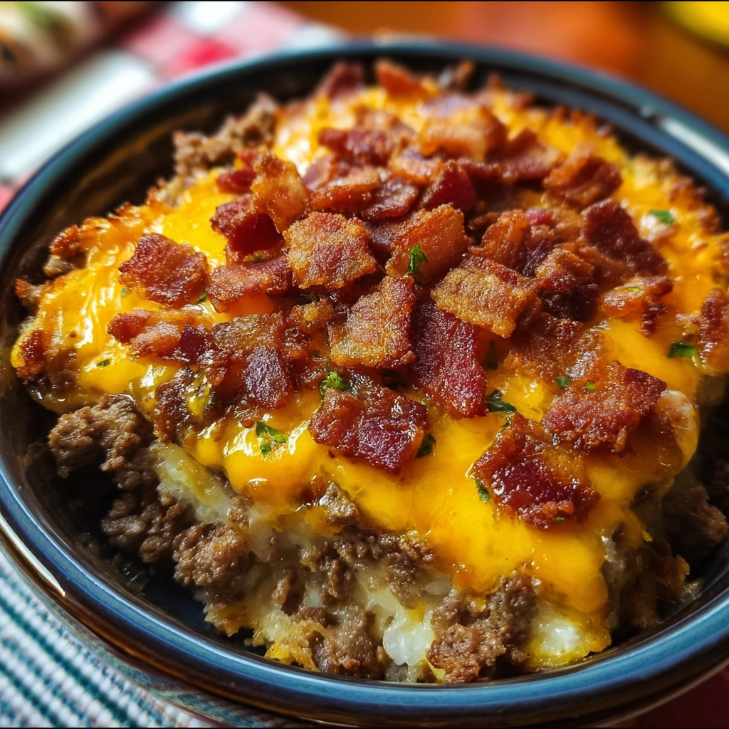 Low-Carb Bacon Cheeseburger Casserole – Cheesy, Meaty & Keto-Friendly