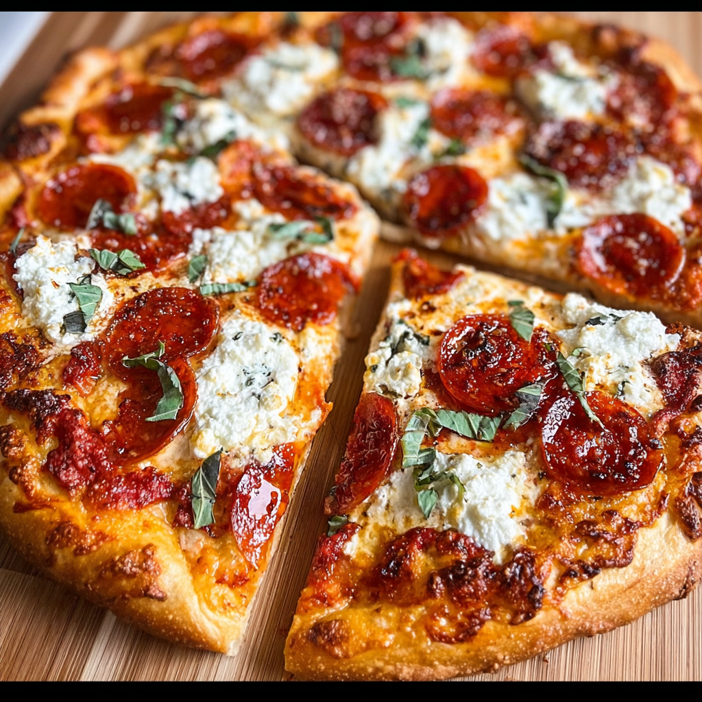 Honey Pepperoni Pizza with Ricotta – Sweet, Spicy & Cheesy Homemade Pizza