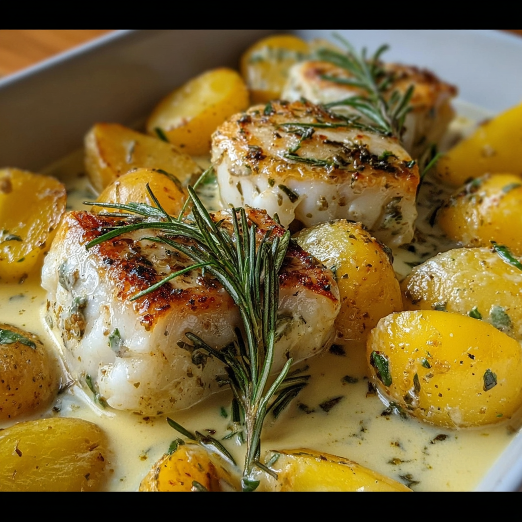 Cod & Potatoes in Rosemary Cream Sauce – Elegant, Comforting Seafood Dinner
