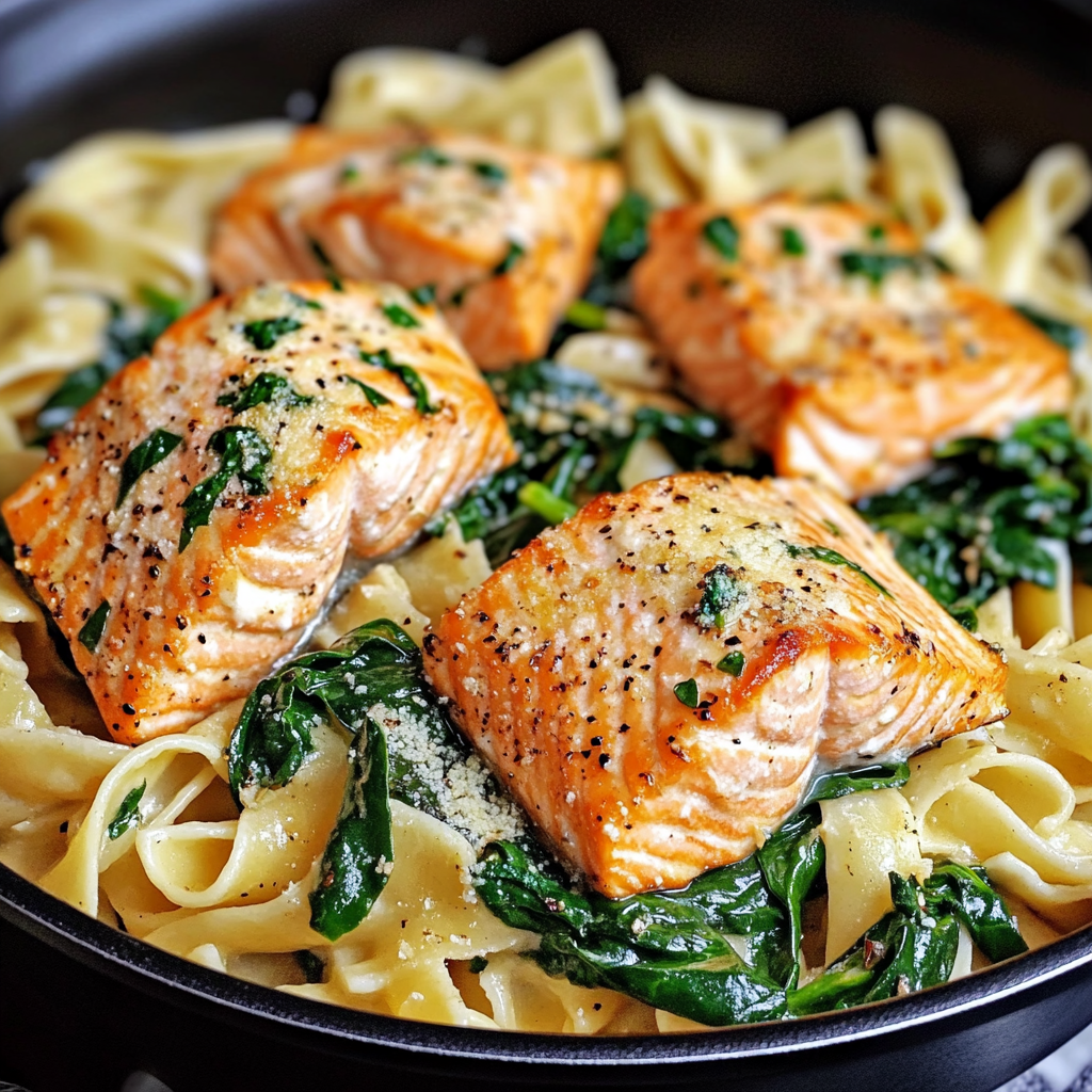 Garlic Butter Salmon Pasta with Spinach – Creamy, Comforting & One-Pot