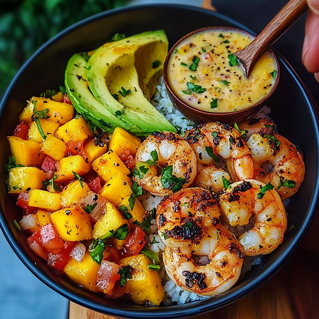 Shrimp and Avocado Bowls with Mango Salsa & Lime-Chili Sauce – Fresh & Flavorful