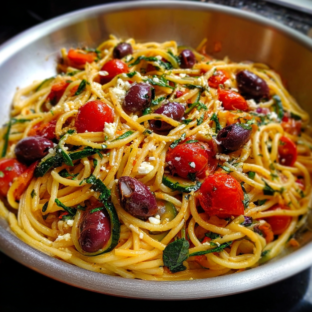 Let’s chat a bit about the health perks of the ingredients in our Mediterranean pasta. The cherry tomatoes are loaded with antioxidants, promoting heart health and glowing skin. Zucchini is a great source of vitamins A and C, which are important for your immune system. Kalamata olives not only bring that delightful briny flavor but also contain healthy fats and antioxidants. And feta cheese? It’s a great source of protein and adds a creamy element to our dish without being too heavy. Overall, this meal is both satisfying and nutritious!